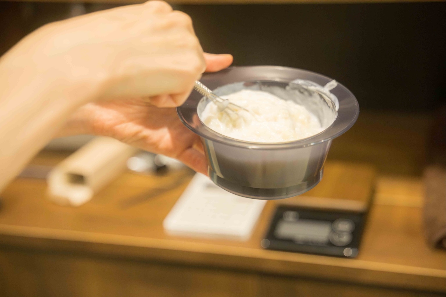 でも染めないわけにはいかないですよね。頭皮の保護剤は必ず全ての方にお付けしています。ジュアンではオイルタイプのものを使用していて、『これをするとしないとではしみる度合いが違う!」とお声をいただいたこともあります。